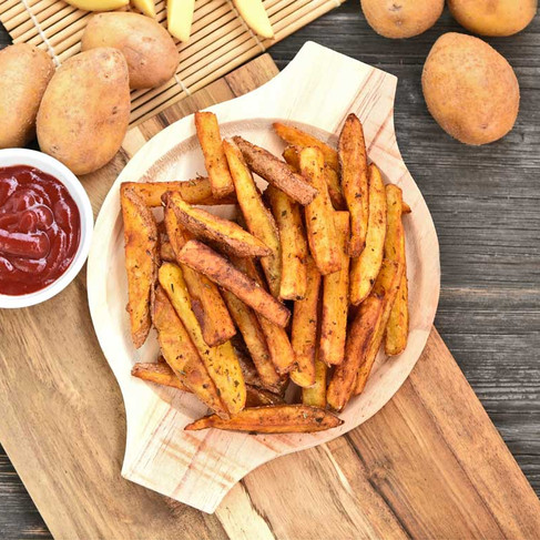Traditionally, potatoes have been divided into two different categories, starchy potatoes and waxy potatoes. Starchy potatoes, like Russets, have lower water and sugar content, but higher starch, as the name implies. This makes them ideal for applications in which you want the creaminess of the potatoes to shine through, or when you’re aiming for crunch. Starchy potatoes are thus great in everything from mashed potatoes to French fries, or even just a standard baked potato with all the fixings.